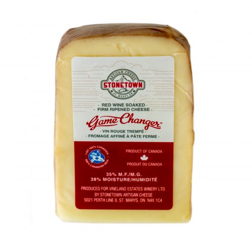 Game Changer Red is extremely creamy and is soaked in Vineland Estates Winery's Game Changer red wine. It tastes great on a cheese platter with fruits and nuts or as a snack. This cheese also melts very well, making it a special treat for raclette or grilled cheese sandwiches. Pairs well with red wine.